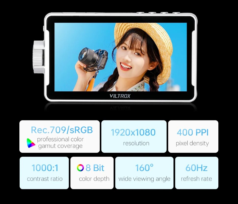 Отличное качество изображенияЛёгкий 5.5" монитор в алюминиевом корпусе весом менее 300г, который обеспечивает чистое и яркое изображение 4K30, необходимое для точной оценки фокуса и экспозиции. Разрешение экрана составляет 1920x1080 пикселей, что гарантирует отличное качество изображения, а поддержка 3D-Lut сделает его незаменимым при художественной съёмке |