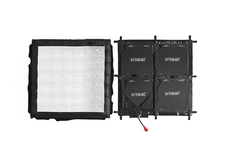 INFINIMAT — это высокофункциональные RGBWW панели в нескольких вариантах габаритов. Модульный дизайн позволяет адаптироваться к различным съёмочным ситуациям, получая наилучшее освещение. Осветитель имеет конструкцию надувной панели, а значит свет получается мягким, словно при использовании софтбокса. Также предусмотрена возможность установки сот и юбки, что позволяет гибко контролировать угол луча и резкость теней. Размер пикселя в больших панелях может быть 1x2 или 2x2 для получения нескольких цветов в пределах одного осветителя |