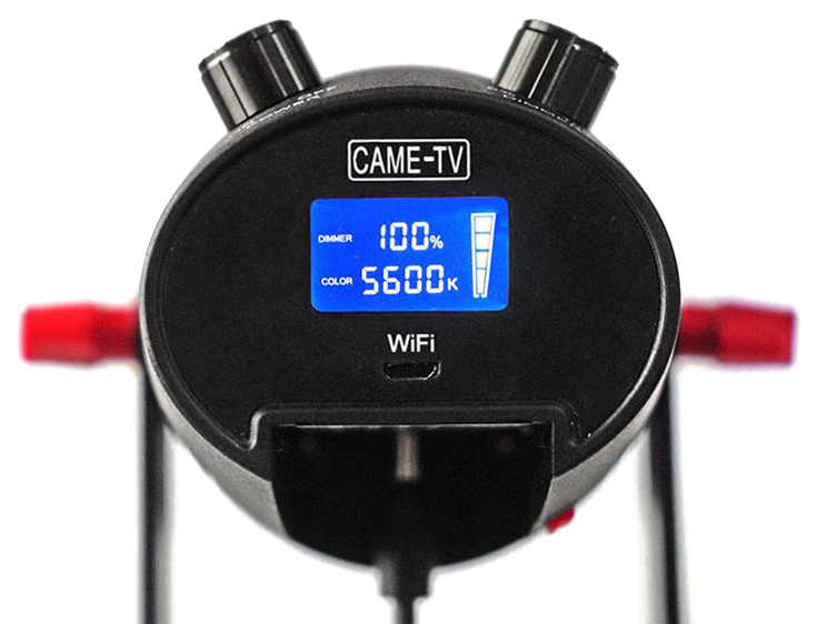 | На задней панели расположен дисплей, отображающий уровень яркости и цветовой температуры, управлять работой прожектора можно при помощи двух удобных ручек на верхней задней части корпуса |