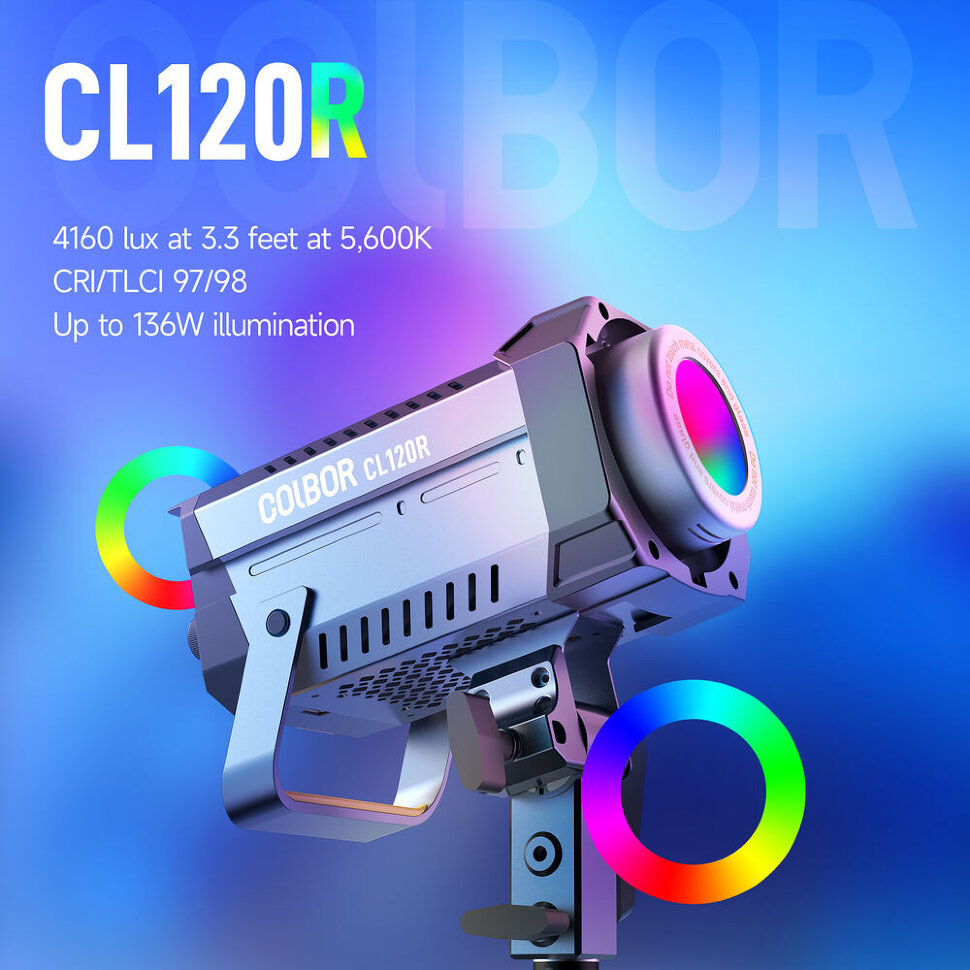 Основные характеристикиОсветитель Colbor CL120R оснащен светодиодным модулем мощностью 120 Вт с регулируемой цветовой температурой 2700–6500 К, а также RGB режимом (до 60 Вт). Обеспечивает освещенность 4160 люкс на расстоянии 1 м без насадок, с высокими показателями цветопередачи (CRI ≥97, TLCI ≥98). Совместим с аксессуарами стандарта Bowens, а крепление NATO позволяет объединить несколько моноблоков в одну схему |