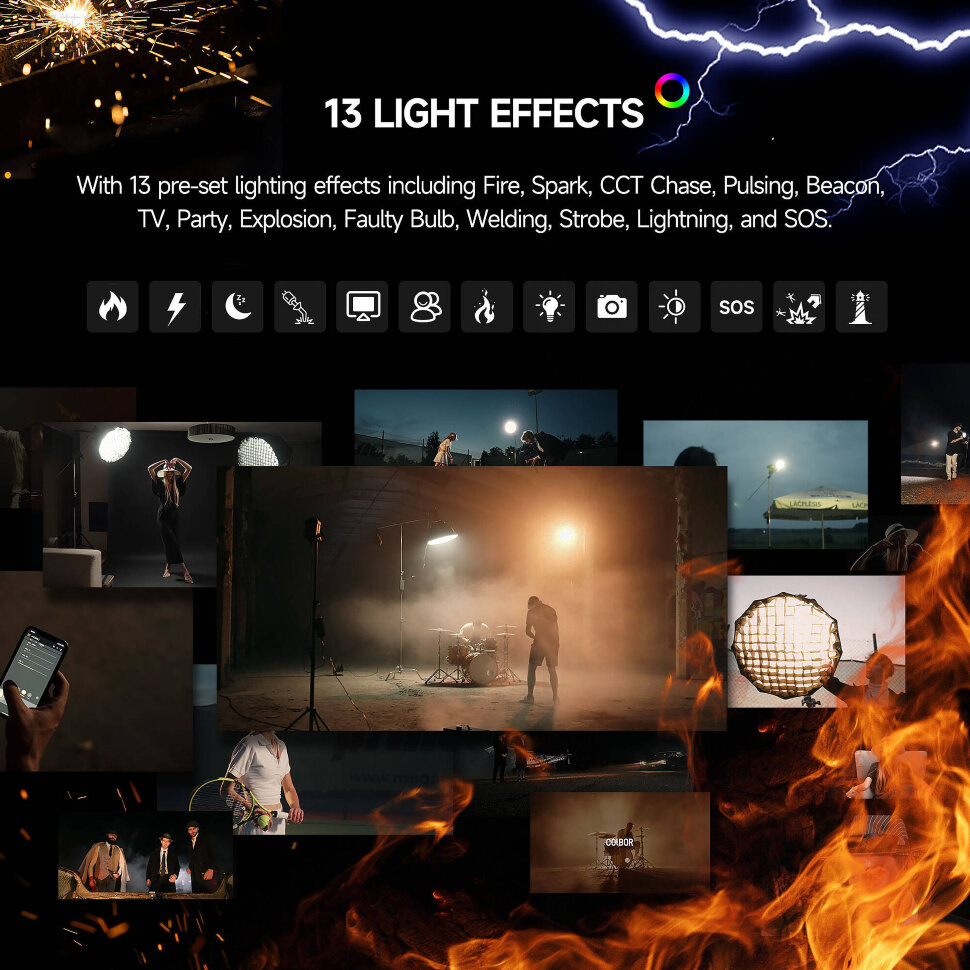 Управление и режимыУстройство поддерживает 13 световых эффектов (огонь, ТВ-мерцание, сигнал SOS), 10-уровневую коррекцию пурпурного/зеленого оттенков (M/G баланс) и полноцветный режим с диапазоном HUE 360°. Управляется через физические регуляторы на корпусе, приложение COLBOR Studio (цветопалитра, копирование реальных оттенков). Mesh Network позволяет объединять до 150 приборов с радиусом управления 150 м |