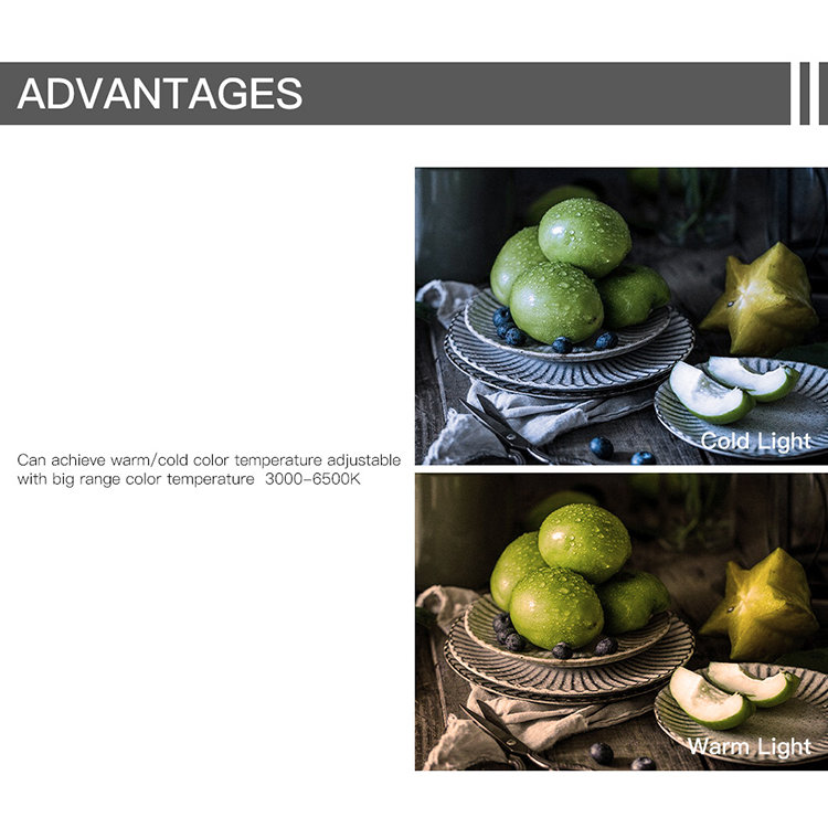 Множество цветовых эффектовМногофункциональный осветитель, предназначенный для фотографов и видеооператов. Благодаря возможности регулировки цветовой температуры от 3000 до 6500К можно подобрать наиболее оптимальное освещение. Режим RGB позволит получить любой цветовой оттенок для достижения требуемого эффекта |