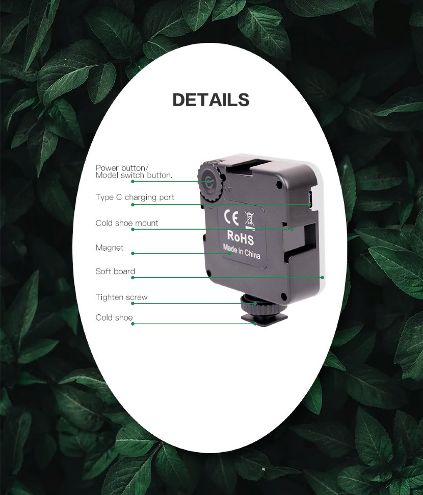 Миниатюрный осветитель от DigitalFoto поможет вам разнообразить съёмку вне студии. Компактные размеры позволяют положить его даже в карман, а встроенная батарея на 2 часа работы делает его автономным. Крепится устройство на холодный башмак, а аналогичное крепление на торце позволяет собрать целую LED панель |