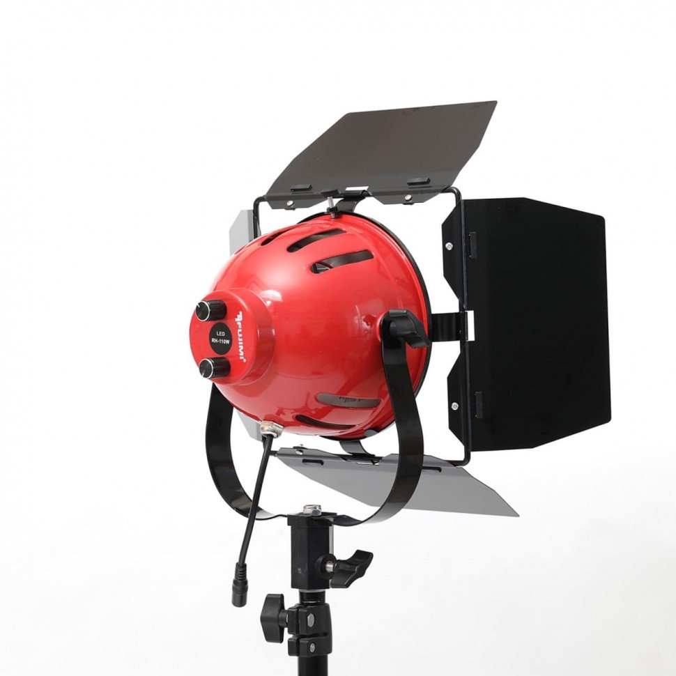 Универсальный светодиодный осветитель со встроенными кашетирующими шторками. Имеет простую конструкцию и устанавливается на стандартную стойку 5/8". Имеет мощность 110 Вт и регулируемую цветовую температуру от теплых 3200 до холодных 550 К |