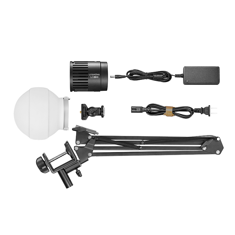 Расширенный комплект настольного оборудования для съёмки блога, трансляции и предметной съёмки. Набор из портативного осветителя Litemons LC30D, пантографа DT-BA01 и набора соответствующего оборудования для комфортной работы |