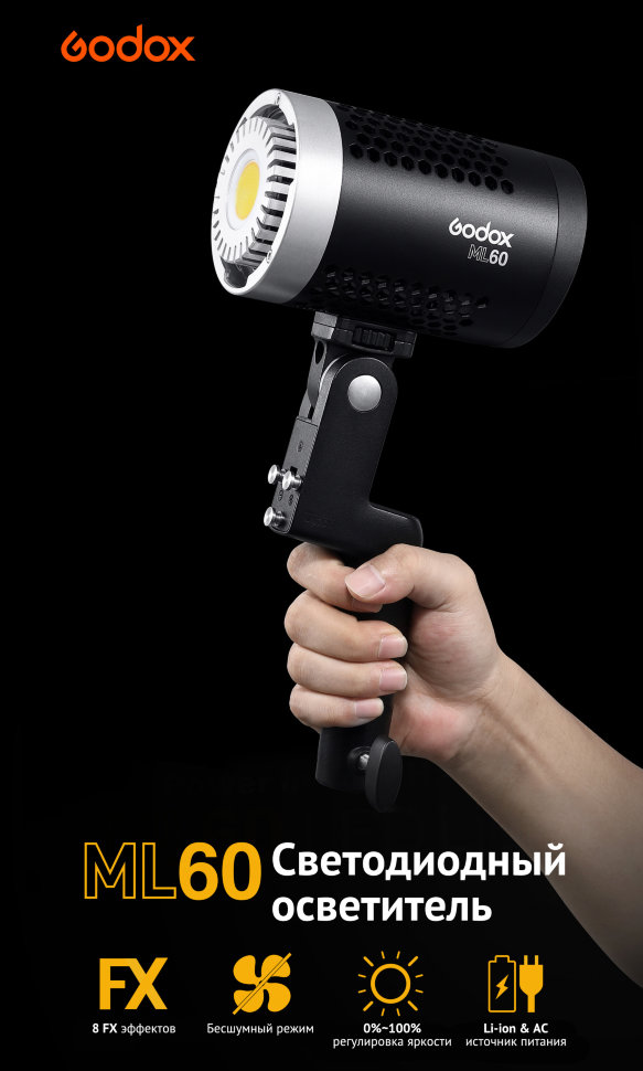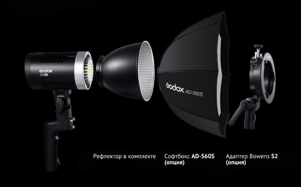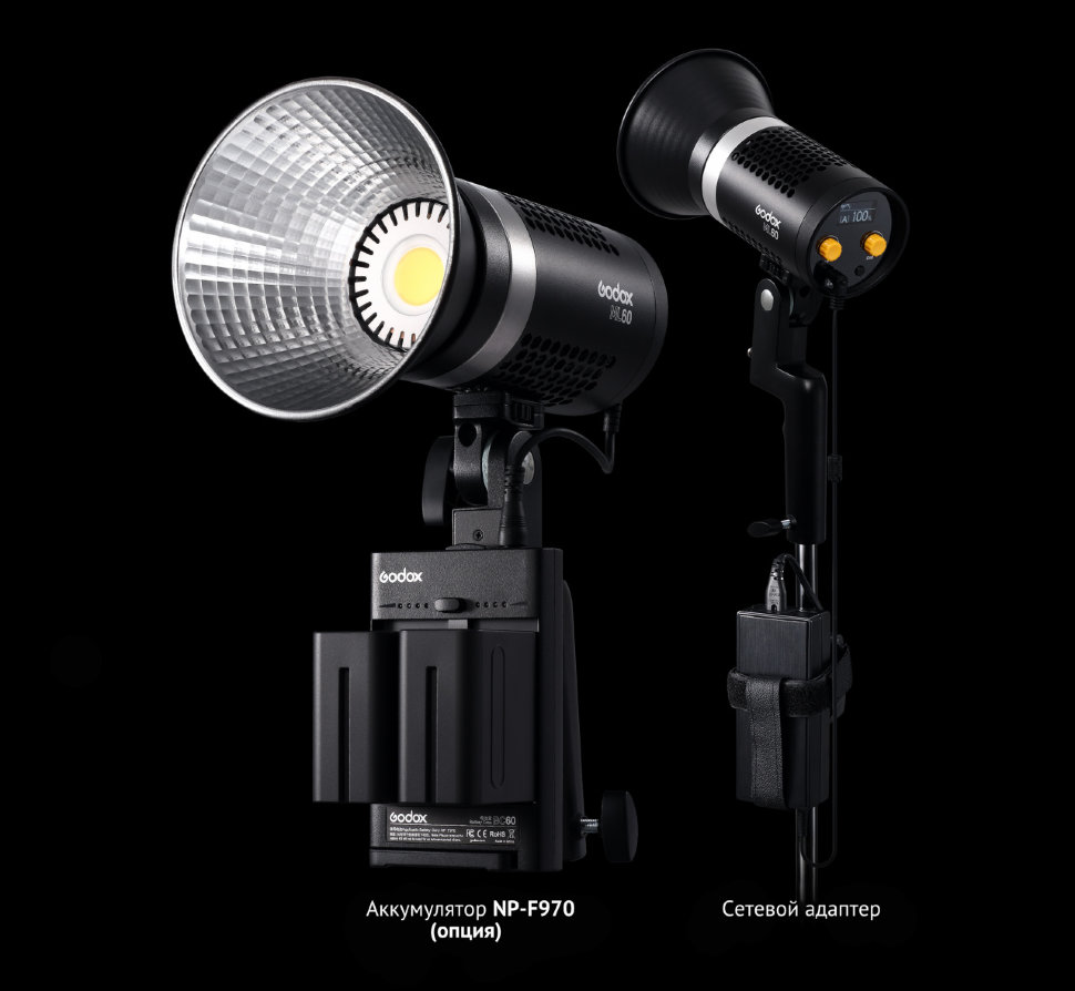 КомпактностьПортативный осветитель легко удерживать в руке, он имеет небольшой вес. При своих компактных размерах он характеризуется превосходной производительностью и надежностью. Осветитель совместим с креплениями Godox. Если использовать адаптер S2, то можно установить аксессуары, которые совместимы с креплением Bowens |