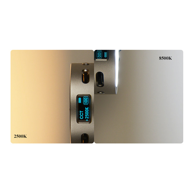 Цветовая температура 2500-8500ККруглый, компактный осветитель, который с легкостью разместится на ладони. Предусмотрена четкая регулировка цветовой температуры от 2500К до 8500К. Яркость регулируется от 0 до 100% |