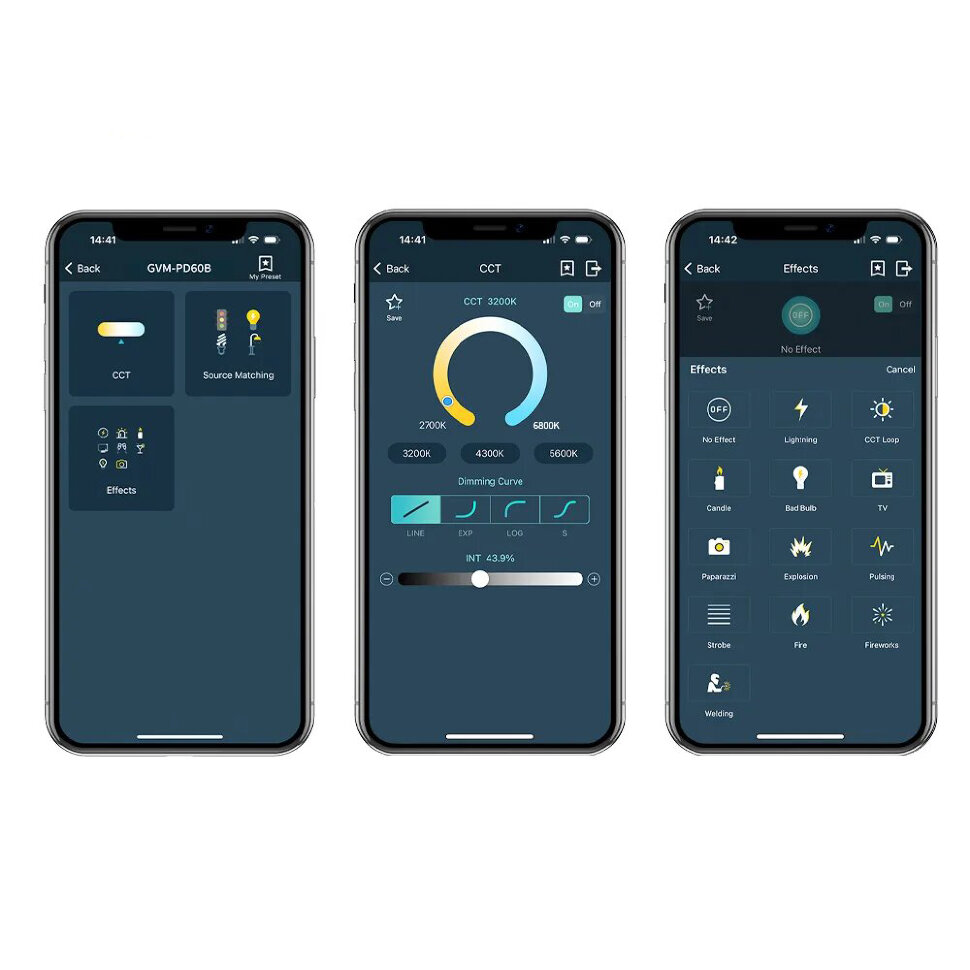 Удобное управление через приложениеУправляйте осветителем дистанционно при помощи приложения для смартфонов и планшетов или подключитесь к устройству с помощью Bluetooth, чтобы синхронизировать работу сразу нескольких осветителей |