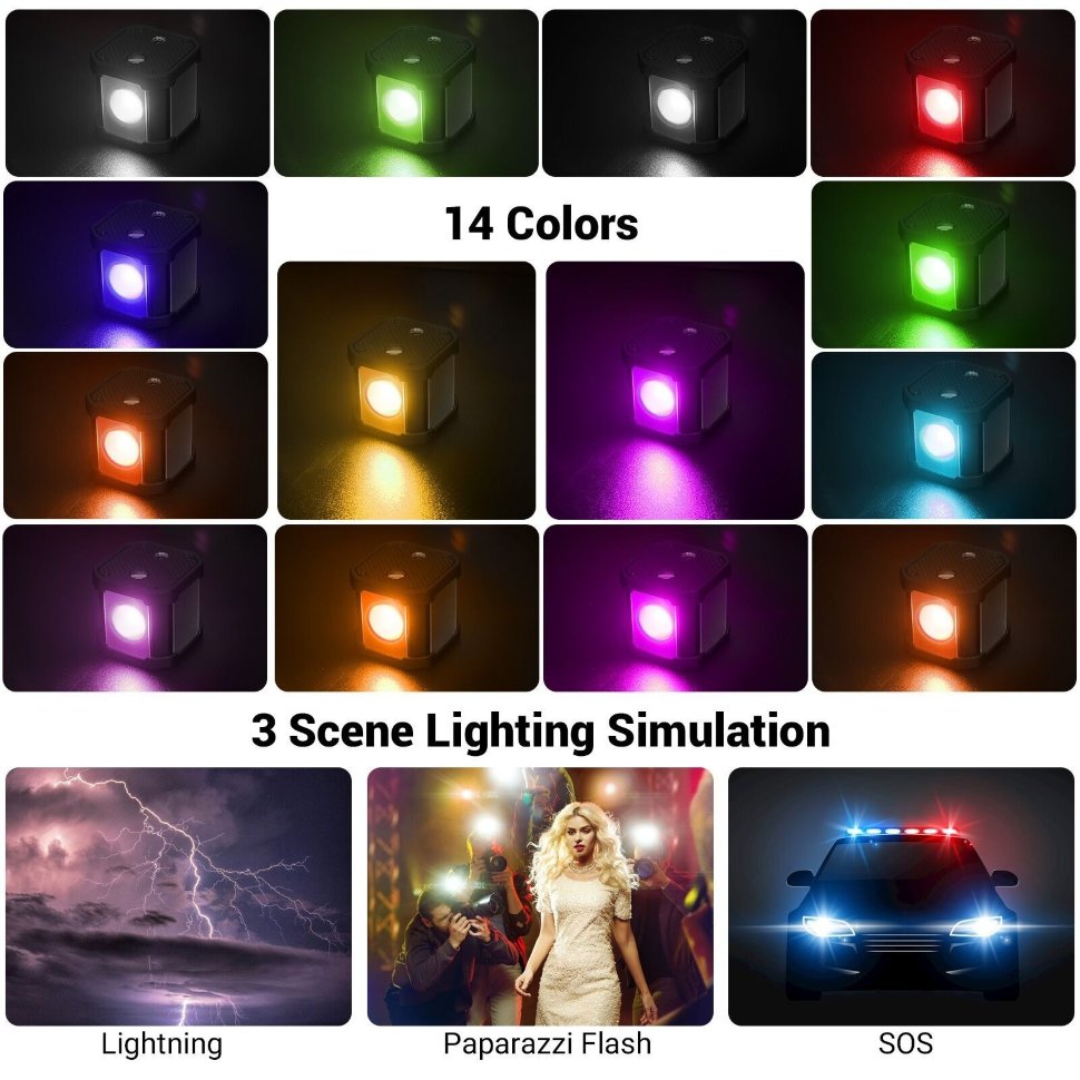 В комплекте целых 14 цветных фильтров для изменения оттенка света. Для удобства сразу несколько фильтров можно закрепить на крышке и быстро поменять их |