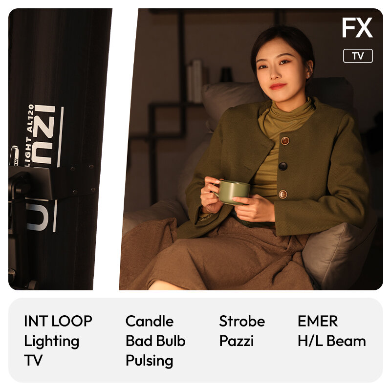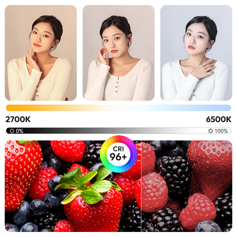 Мягкий светБлагодаря увеличенной площади рассеивания, свет становится мягким и равномерным, словно при использовании софтбокса. С регулируемой цветовой температурой от 2700K до 6500K и индексом цветопередачи (CRI) ≥96, этот осветитель обеспечивает точную передачу оттенков. А 10 встроенных световых эффектов помогут вам адаптироваться к любым условиям съемки |