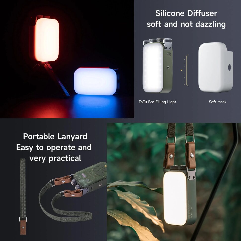 Мобильность и универсальностьВстроенный аккумулятор емкостью 7500 мАч обеспечивает до 210 минут работы на 100% яркости и заряжается через порт Type-C за 3 часа с возможностью одновременного использования и зарядки. Многочисленные варианты крепления включают металлическую петлю для подвешивания, стандартные резьбовые отверстия 1/4" с нескольких сторон и холодный башмак для совместимости с фототехникой и стабилизаторами. Комплект включает силиконовый рассеиватель для создания мягкого света |