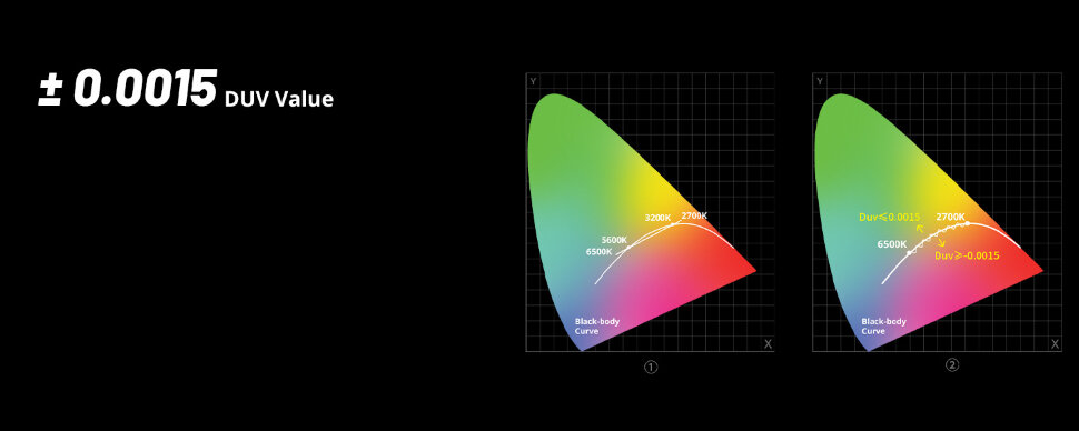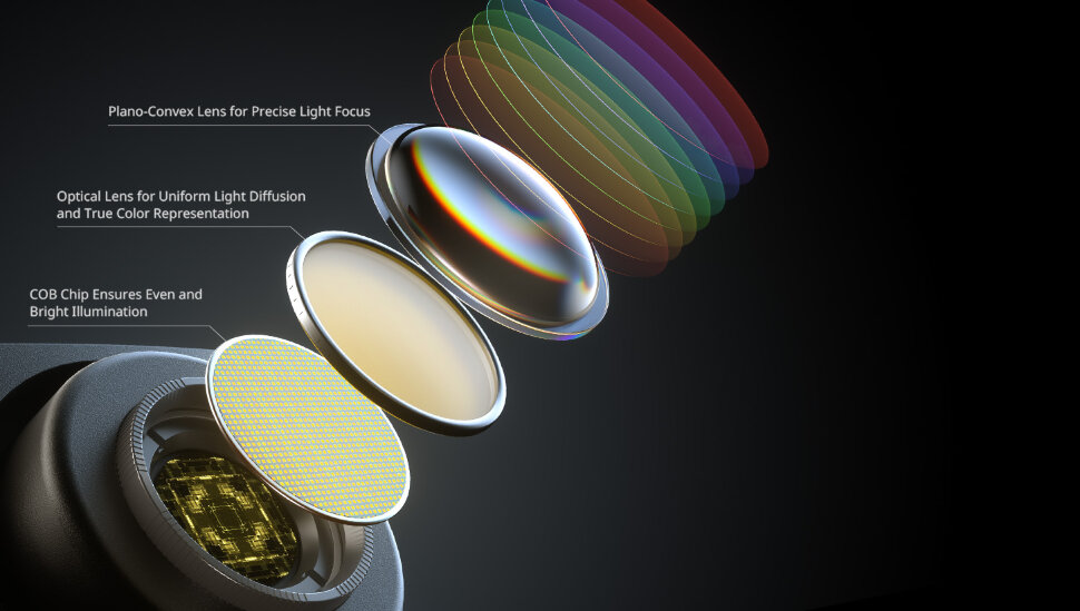 Прецизионная оптика и управлениеОптическая система прибора сочетает высокую яркость с энергоэффективностью: кастомизированные линзы снижают энергопотребление на 10% при сохранении светового потока предыдущего поколения. Технология Three Times Optics обеспечивает равномерное распределение света и индекс цветопередачи CRI ≥95+. Новая COB-матрица минимизирует отклонение цветовой температуры (DUV ±0.0015), сохраняя точность оттенков во всем диапазоне 2700–6500 К. Управлять параметрами можно четырьмя способами: вручную на корпусе, через приложение SmallGoGo по Bluetooth, с помощью контрольной панели или по протоколу DMX  |