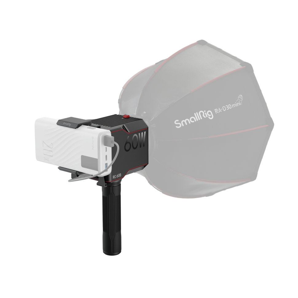 Удивительная лёгкостьКорпус RC 60B изготовлен из жаростойкого поликарбоната и АБС-полимера (класс V0), а для большей прочности усилен элементами из металла, благодаря чему вес аппарата удалось снизить на 30%. Даже вместе с рукояткой и софтбоксом, общий вес сетапа составит всего 1,1 кг  |