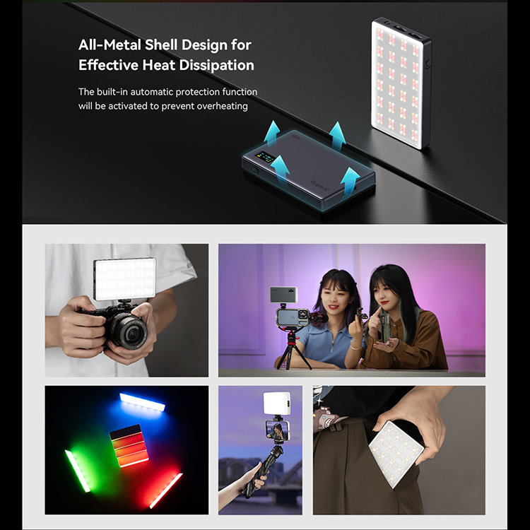 Компактный осветитель в ультратонком дизайнерском исполнении. Имеет регулируемую цветовую температуру 2500-8500К и регулируемую яркость от 0 до 100%. Показатель CRI 98+ и TLCI 98+. Оптимальный вариант для фотосъемки, видеосъемки, записи блога и других целей  |