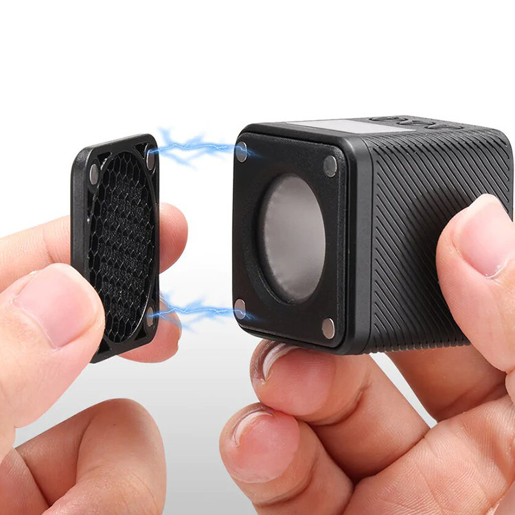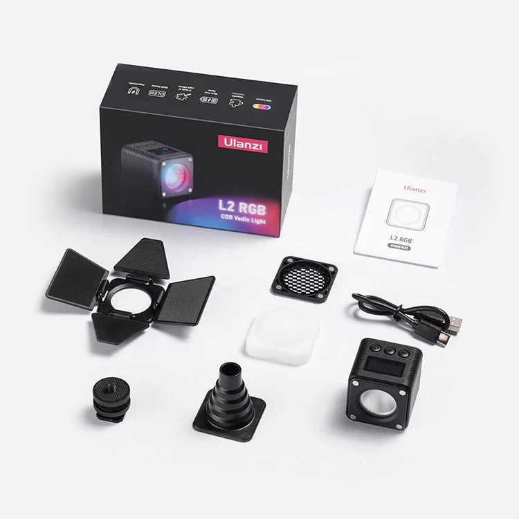 L2 RGB имеет возможность оперативной установки диффузора, а также в комплекте предусмотрен снут и шторки для контроля луча. Магнитная поверхность дает возможность зафиксировать лампу на любом металлическом основании. Предусмотрено резьбовое отверстие 1/4 для установки на штатив и крепление на холодный башмак  |
