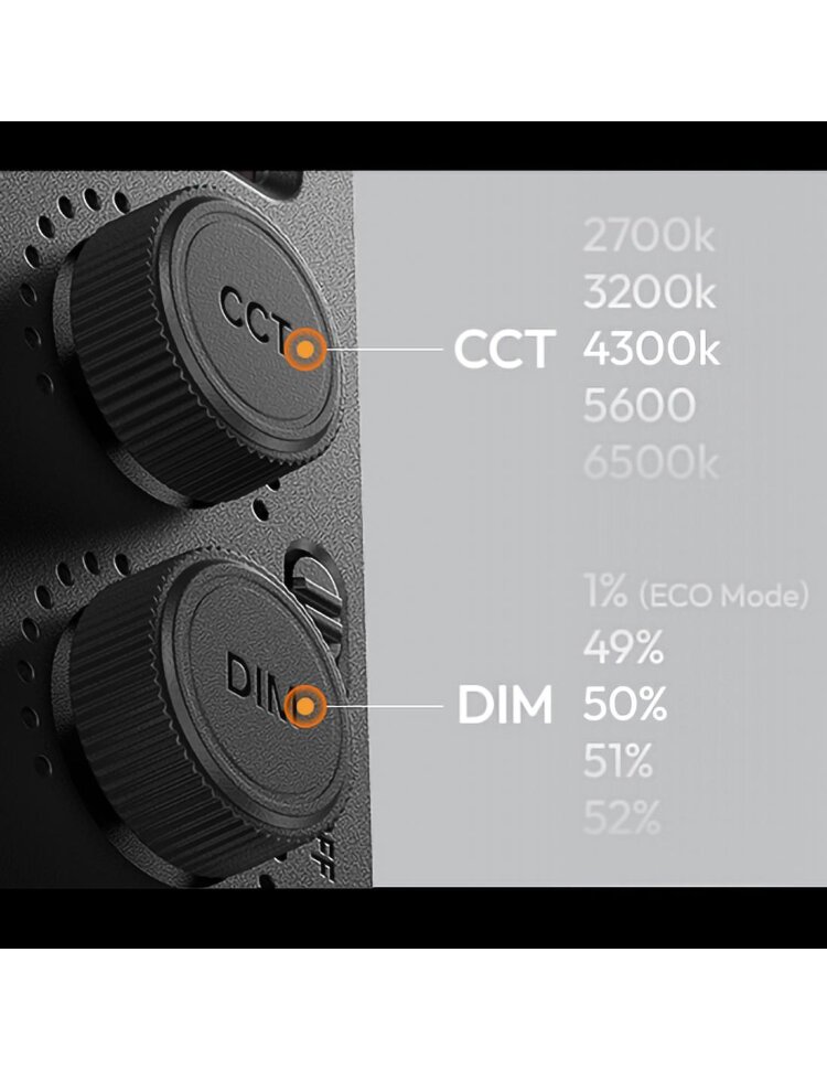 Гибкие настройки для различных сценариев съемкиПлавная регулировка яркости от 1% до 100% и высокий индекс цветопередачи CRI 96+ обеспечивают точную и естественную передачу цветов. Настройка параметров осуществляется с помощью двух регуляторов с кнопочным управлением, а все изменения отображаются на информативном LCD-дисплее. В комплект добавлен рассеиватель с магнитным креплением для создания более мягкого освещения |