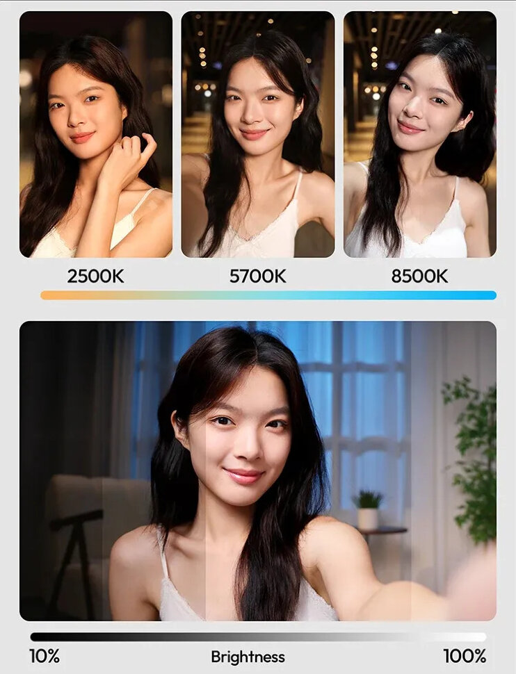 Профессиональный контроль света и цветаВторое поколение популярного осветителя для селфи и блога! В конструкцию было добавлено зеркальце, чтобы вы смогли следить за своей внешностью, а также подставка, с помощью которой можно поставить смартфон на стол. Оттенок света можно регулировать от холодных 2500K до теплых 8500K, а высокие показатели цветопередачи гарантируют качественные оттенки в кадре. Бесступенчатая регулировка позволяет точно настраивать параметры для создания естественного освещения |