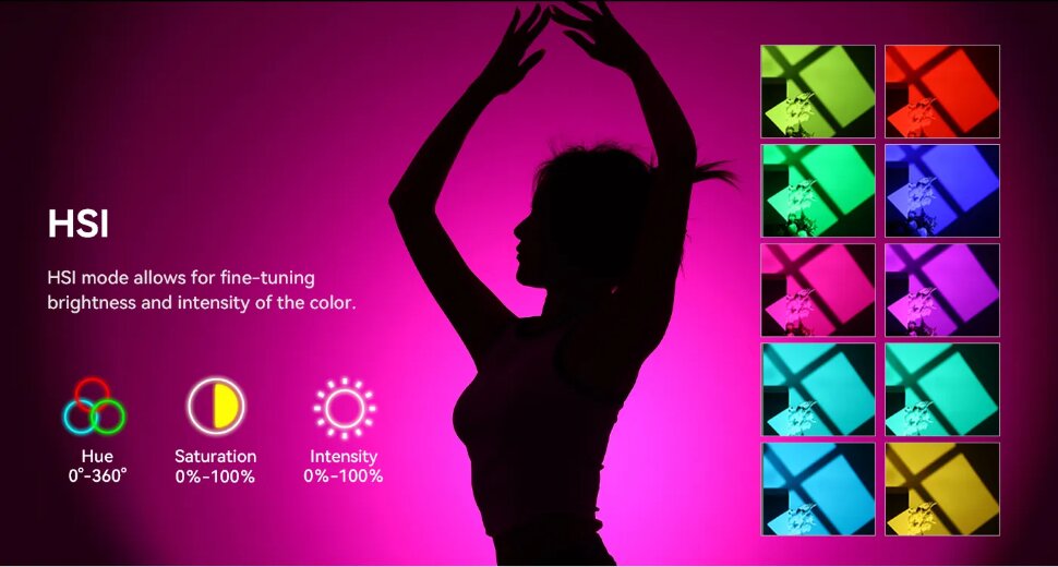 Удобство управленияЭтот свет оснащен регулируемой цветовой температурой в диапазоне от 2700K до 6500K, что позволяет гибко настраивать освещение в зависимости от ваших нужд. Световой поток достигает до 12000 люмен. Системы управления включают как ручное управление, так и удаленное управление через приложение, что делает его удобным для использования в студии и на выездных съемках |