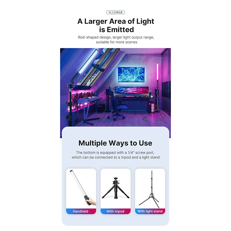 Удивительно лёгкий, но при этом яркий RGB жезл для креативных съёмок! Его простое управление и функциональность сделают его отличным вариантом как для домашней студии, так и поездок. Обновленная модель 2024 года имеет увеличенную мощность до 10 Вт, что даёт еще больше света! |