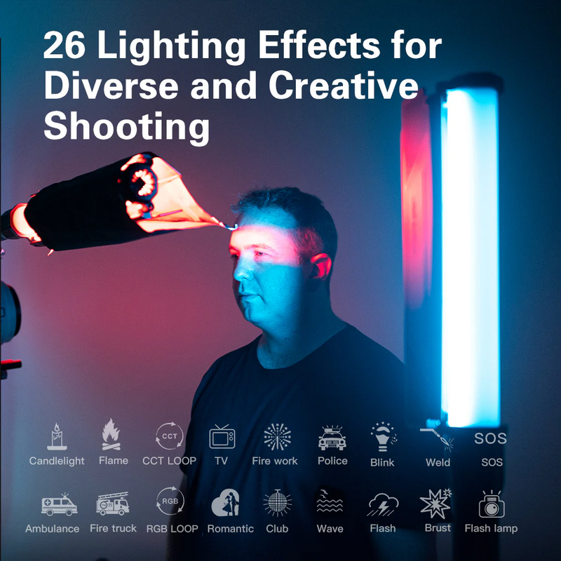 Творческая свободаВ комплект уже добавлены специальные шторки, с помощью которых вы сможете легко и просто регулировать угол луча. 26 режимов спецэффектов помогут реализовать необычные творческие идеи и помогут в производстве контента |
