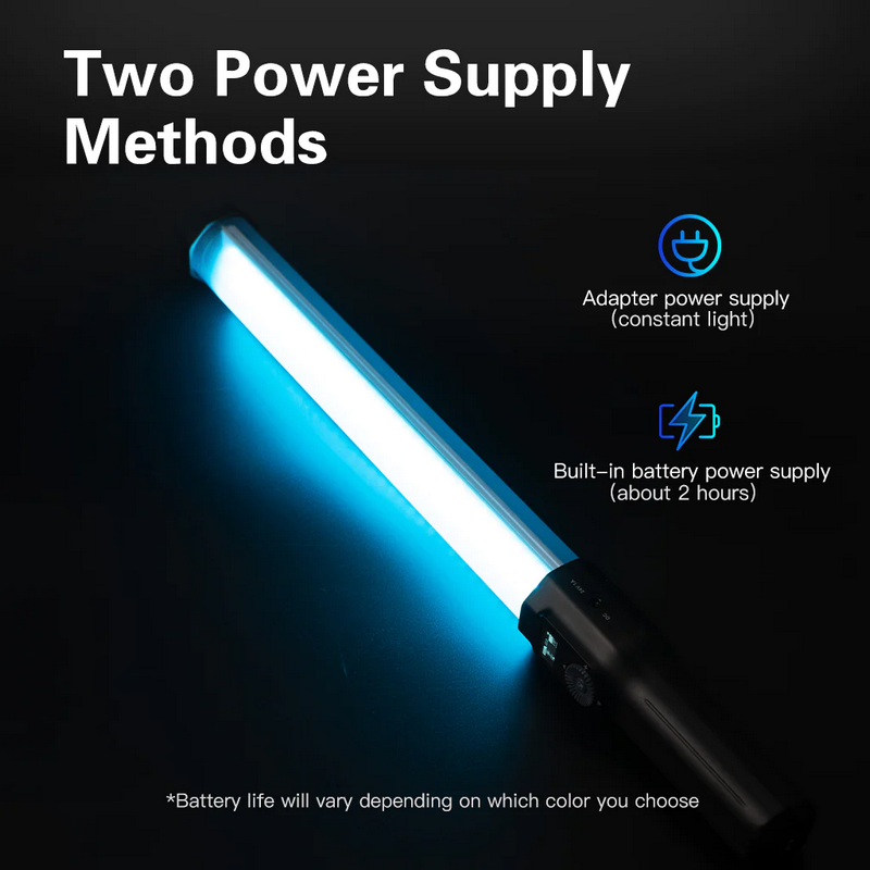 Автономная работаВ рукоятке осветителя спрятана батарея, что способна обеспечить до 110 минут работы. Также предусмотрен порт DC 5.5/2.5мм для работы от сети. В верхней и нижней части имеется крепление 1/4" для установки на треногу или иное крепление |