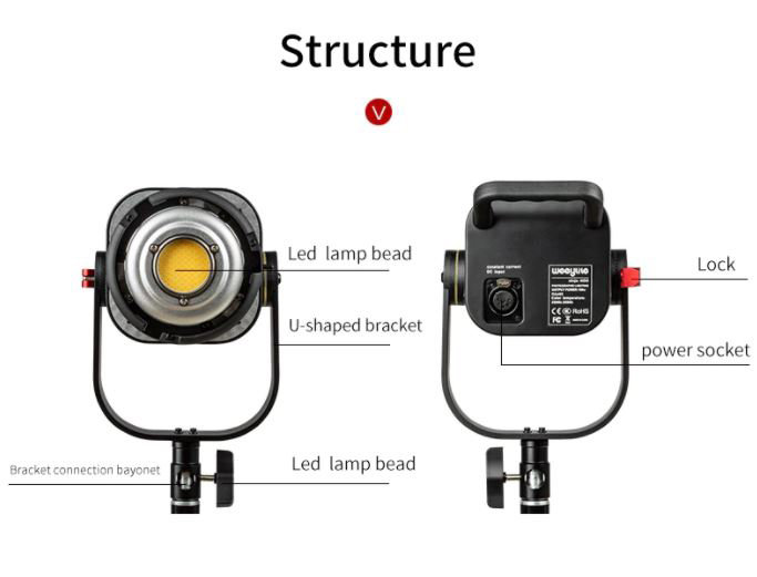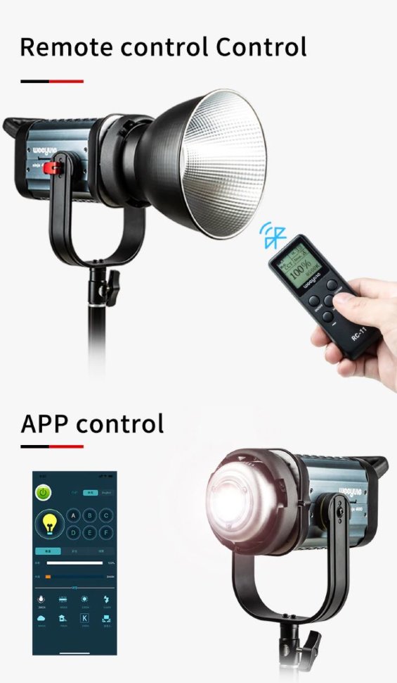 Выберите свой вариант управленияПомимо управления с основного модуля, настраивать работу видеосвета можно и воспользовавшись приложением, установленным на ваш смартфон. Соединение с устройством будет происходить через Bluetooth 2,4 ГГц. Помимо этого, Weeylite ninja 400 поддерживает протокол DMX, с помощью которого станет возможным управлять работой сразу нескольких осветительных приборов |