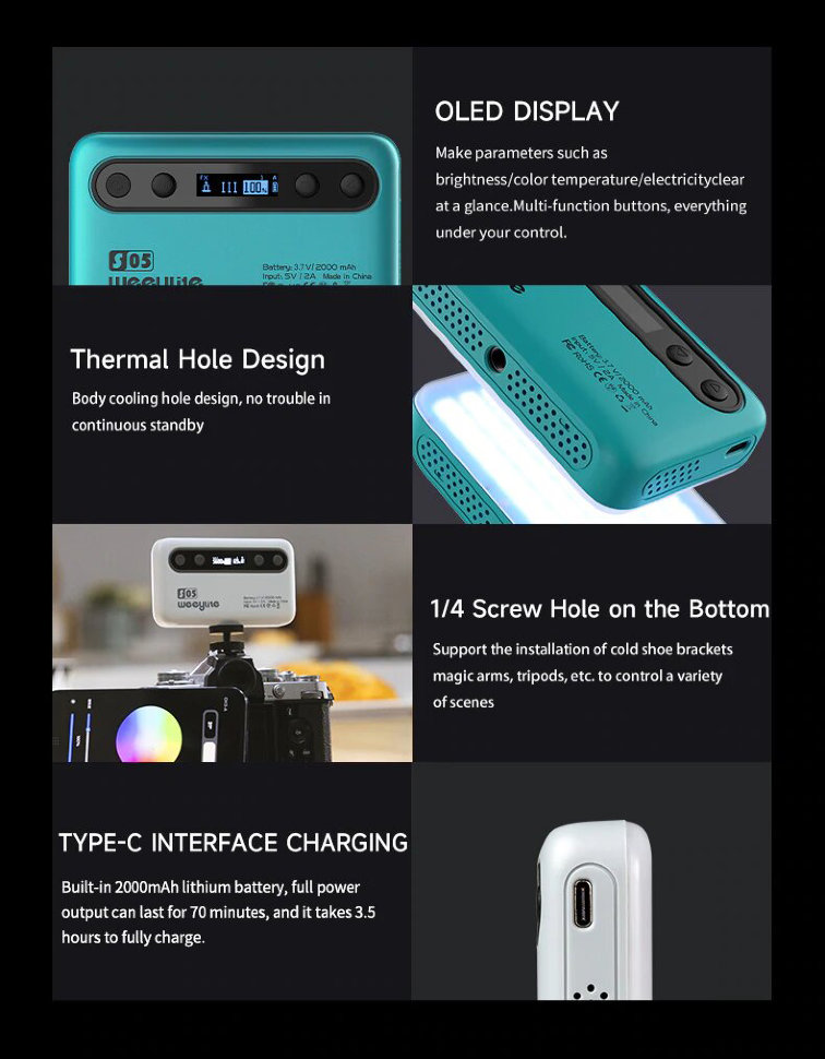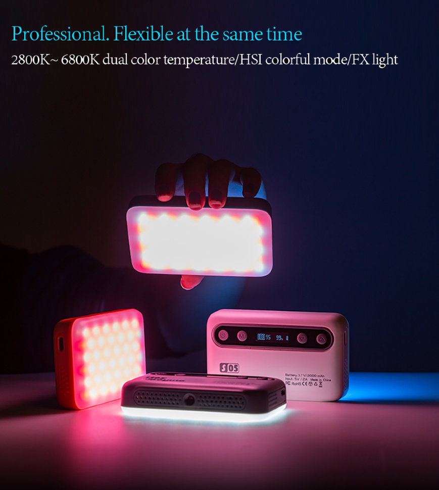 36000 оттенковЯркий не только по возможностям, но и по дизайну осветитель станет отличным выбором для уличного фотографа или блогера. Светодиодная панель на 5 Вт имеет RGB режим с возможностью тонкой настройки нужного цвета через фирменное мобильное приложение. CCT имеет регулируемую цветовую температуру 2800 - 6800 К, а также регулировку яркости от 1 до 100% |
