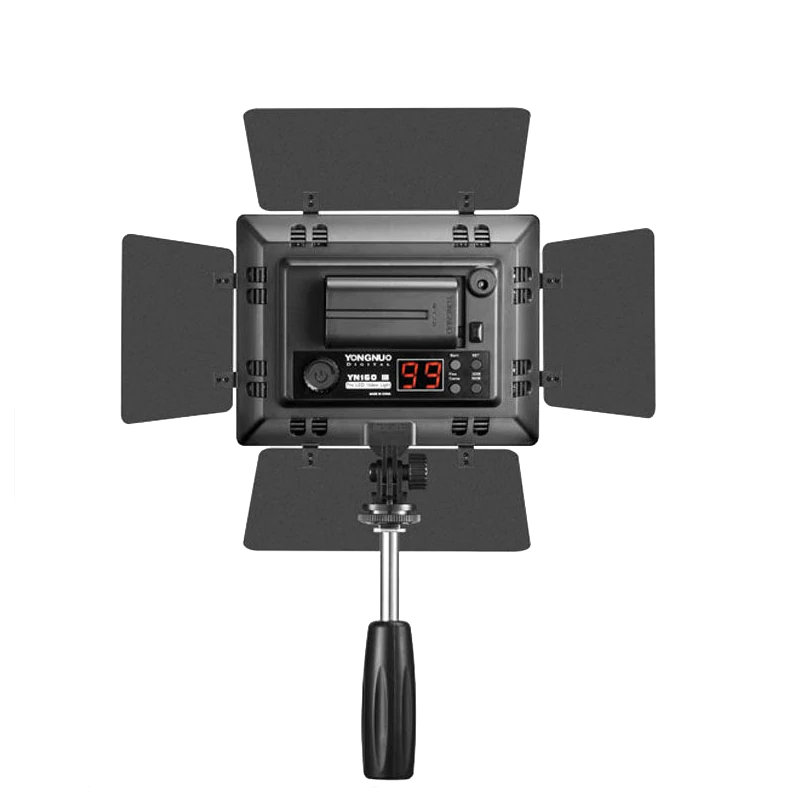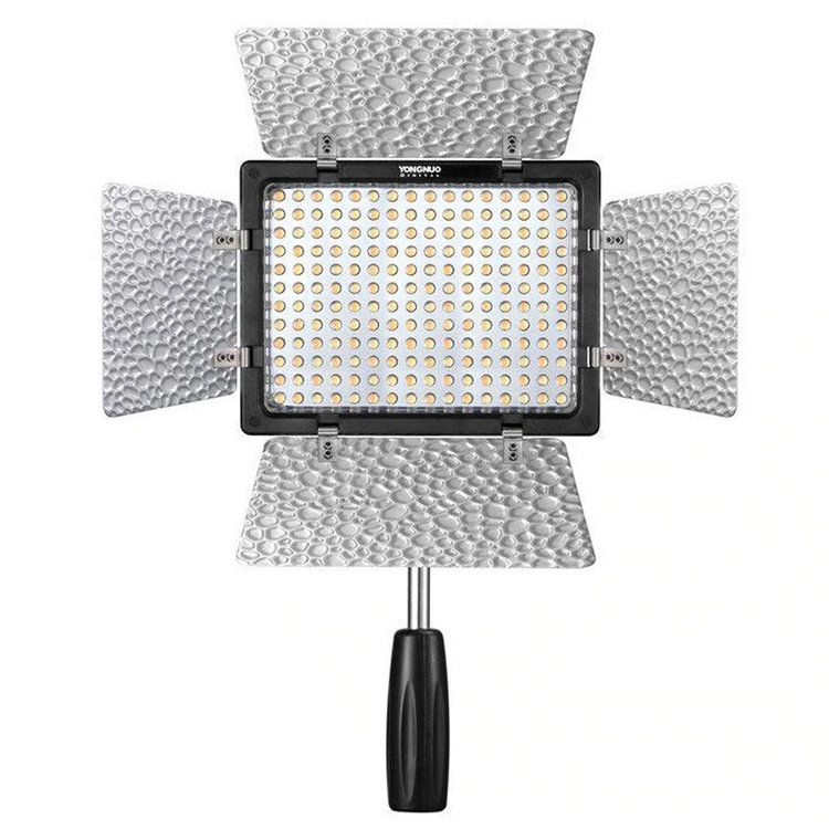 УдобныйТакже, в наборе есть крепление для установки на съёмочное оборудование, стандартная настольная подставка и ручка, для того, чтобы держать YN-160 в руке |