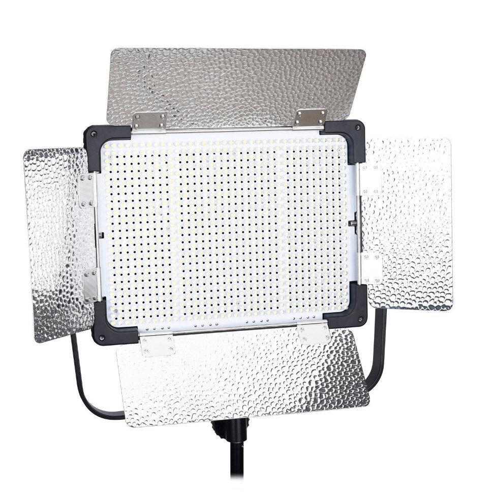 YN9000 выполнен из высокопрочного алюминиевого сплава. Оснащен дополнительно шторками для улучшения эффекта рассеивания и обеспечения большого угла освещения. Осветительное устройство может функционировать как от сетевого адаптера, так и от двух аккумуляторных батарей NP-F970. Управлять можно при помощи кнопок на задней панели и удаленно используя пульт или приложение. С мобильного устройства можно регулировать интенсивность света |