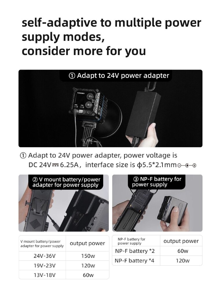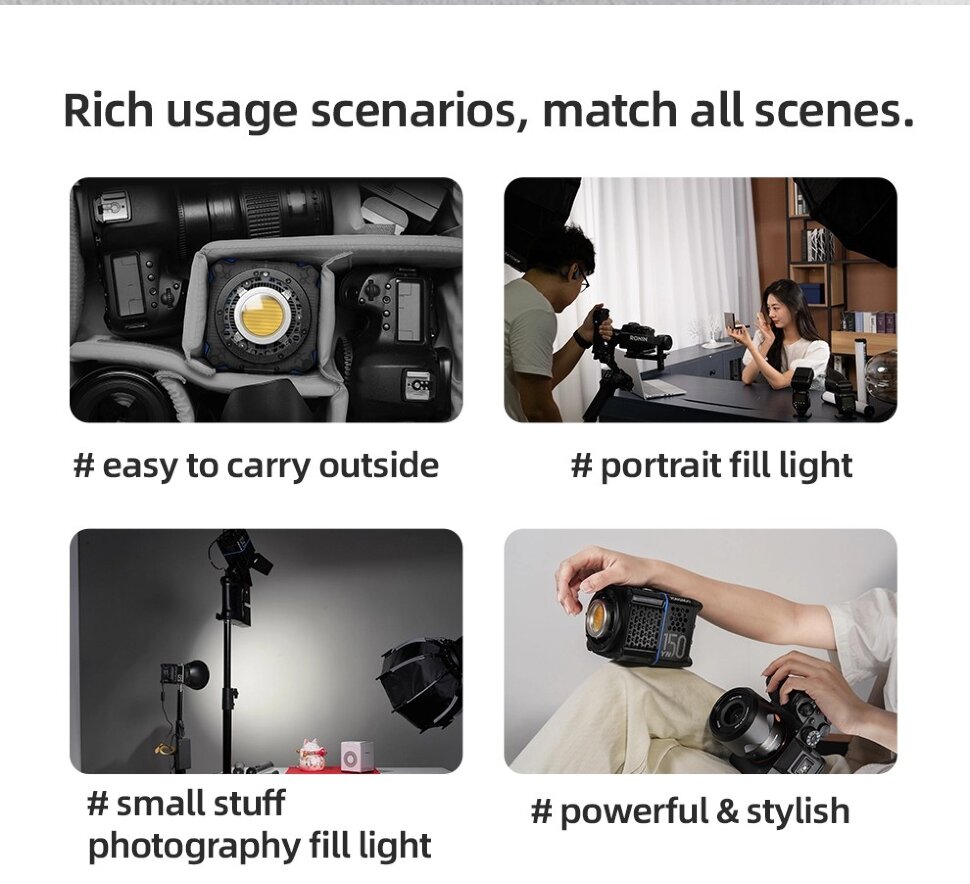 Большая мощь в компактном корпусеМиниатюрный моноблок весом 0.5кг содержит в себе 150 Вт света, способного решить множество задач для съёмки. Его просто взять с собой в поездку, поставить в домашней студии или использовать на природе. Он оснащен байонетом mini Bowens, а YongNuo уже позаботились о различных насадках для большей функциональности |