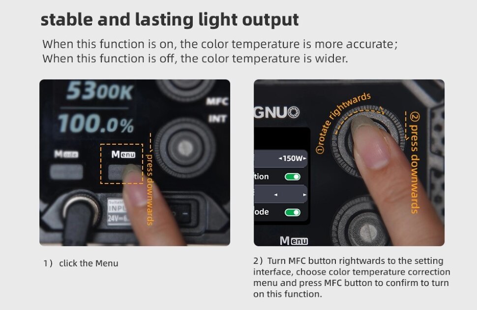 Цветовая температураМаксимальный диапазон цветовой температуры составляет 2700 - 6500 K, но на максимальной мощности (свыше 120 Вт) будут доступны только 3200 - 5600 K. Более яркие диоды берут на себя всю нагрузку для оптимизации работы и избежания перегрева |