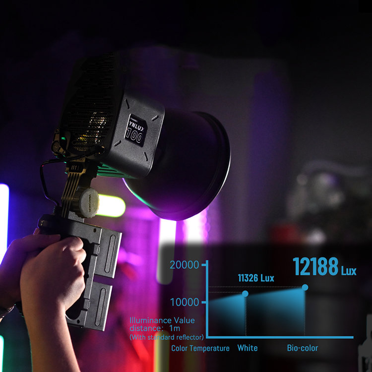 Прибор имеет мощность в 100Вт и высоким индексом цветопередачи. Байонет Bowens даёт возможность установить любую соответствующую насадку. В двухцветной версии предусмотрено 12 FX режимов для видео |