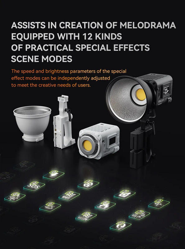 Еще мощнееЕще более мощная и современная версия ультракомпактного моноблока серии LUX от YongNuo обзавелась усовершенствованной матрицей диодов, что позволило увеличить мощность до 200 Вт, а также получить улучшенную цветопередачу для профессиональной работы. Осветитель имеет байонет Bowens, а также несколько встроенных FX режимов для создания видео эффектов |