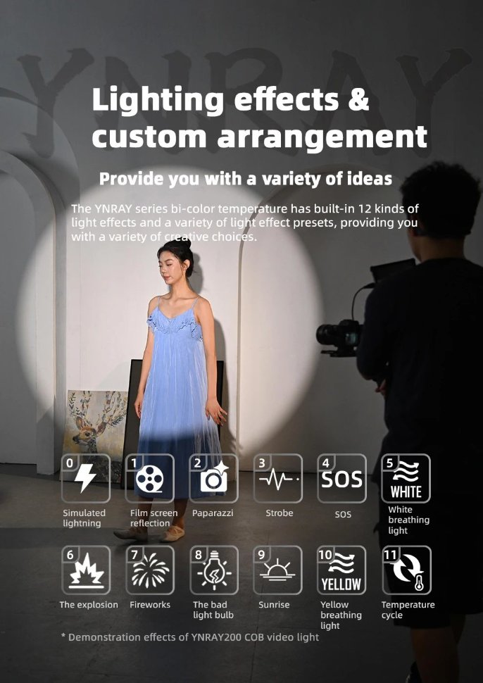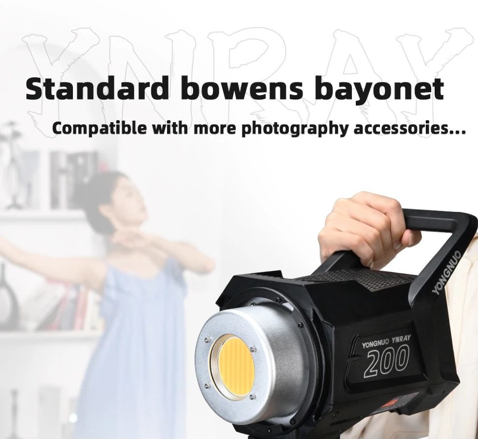 Портативный студийный моноблок YNRAY200 стабильно обеспечивает выходную мощность 200 Вт, обеспечивая любую сцену качественным равномерным светом. Крепление для насадок Bowens позволяет использовать различные отражатели и софтбоксы, что позволяет получить необходимое для съёмки освещение |