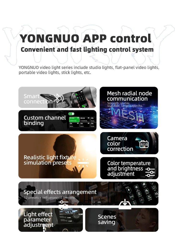 | Способ управления | панель управления на корпусе, приложение YongNuo app |