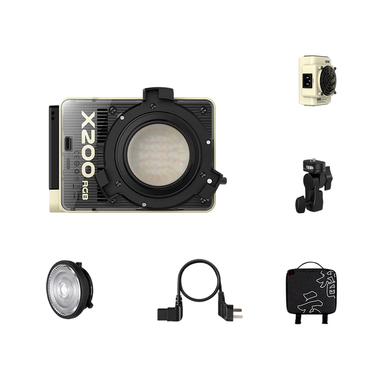 Гибридное питание и совместимостьПоддержка аккумулятора V-mount позволяет работать на полной мощности до 200 Вт. Альтернативные варианты включают питание через порт Type-C PD3.1 (100 Вт) или стационарный адаптер. Стандартное крепление Bowens обеспечивает совместимость с большинством модификаторов света, включая фирменный отражатель с оптическими призмами |