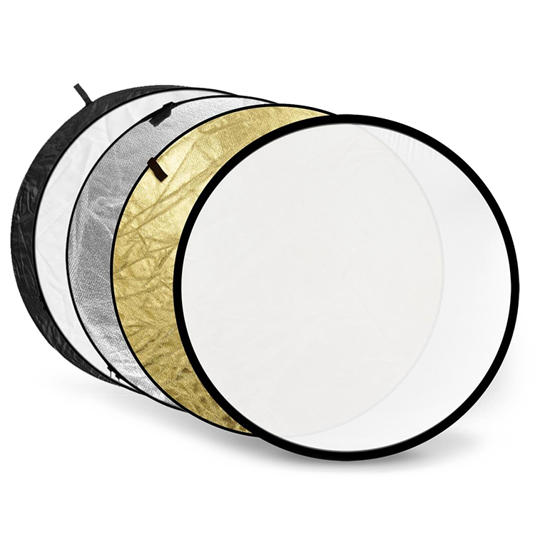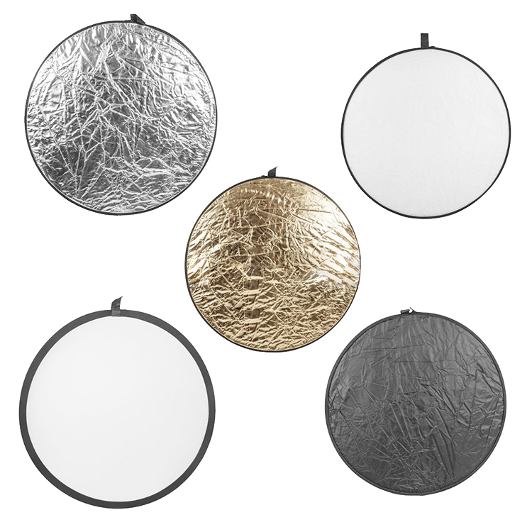 Набор круглых дисковых отражателей 5 в 1. В комплектацию входит белый, золотистый, черный, серебристый и диффузный отражатель. Представленные аксессуары прекрасно подойдут для профессиональной съемки с естественным освещением на природе и для работы в фотостудии |