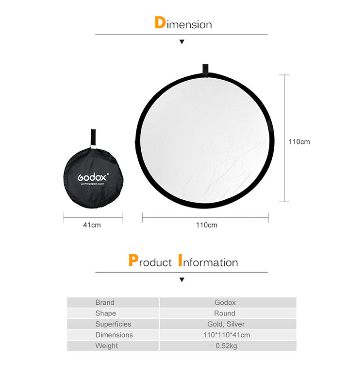 Повышенная прочность, износоустойчивостьGodox RFT-09 выполнен из высокопрочного материала. По периметру имеется упругий каркас. Ключевой особенностью данного устройства является рабочий диаметр 110 см. Это позволяет использовать отражатель для съемки модели по пояс или же подсветки небольших объектов. Поставляется аксессуар вместе с чехлом на молнии для удобства транспортировки |