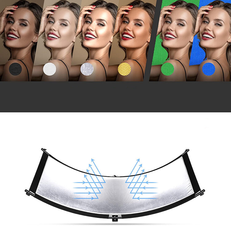 4 дополнительных цветаВ комплект входят две двусторонние сменные поверхности: золото/белый, синий и зеленый, которые добавляют цветовые эффекты и позволяют использовать фон для хромакея, а благодаря липучкам смена полотна выполняется быстро и легко |