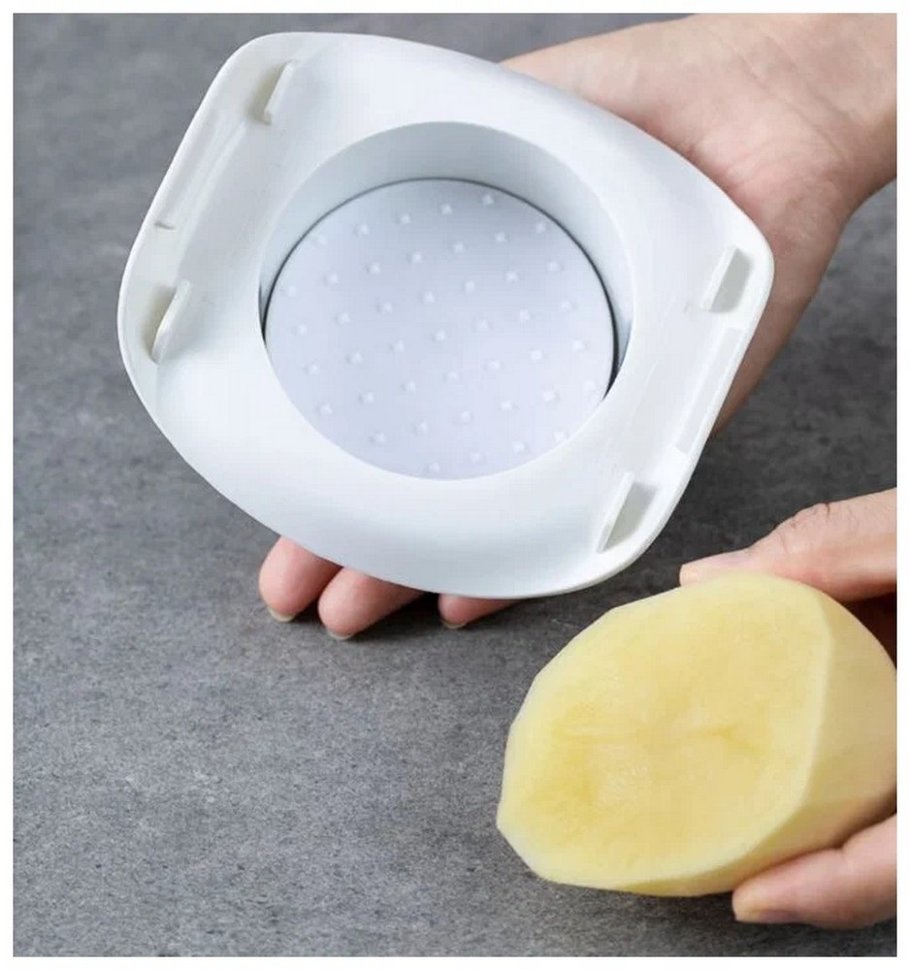 Терка крайне проста и безопасна в использовании. Специальное устройство защищает руки пользователя при работе с маленькими кусочками продуктов. Нарезанные овощи попадают в специальный объемный контейнер, который сохраняет их чистыми. Контейнер этот также оснащен отверстиями для слива жидкости |