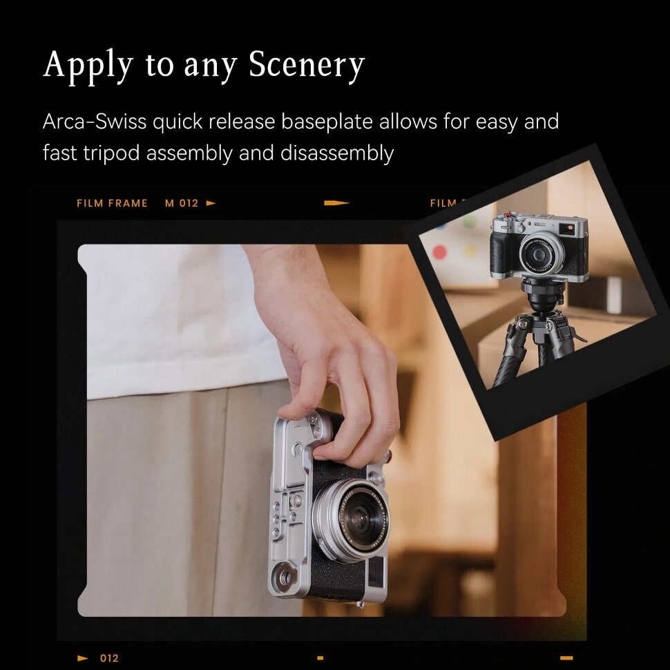 Нижняя часть имеет профиль Arca-Swiss, что позволяет легко и быстро установить камеру на соответсвующую штативную голову или стабилизатор. Кроме того, рукоятка легко фиксирует камеру с помощью винта с D-образным кольцом диаметром 1/4", а это обеспечивает надежную фиксацию и безопасность использования |