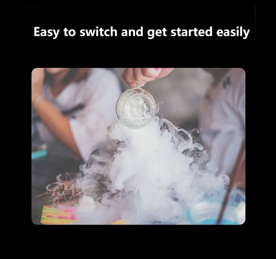 Режим сухого льдаГенератор может использоваться и как устройство для создания эффекта жидкого дыма, заменяя сухой лед. Это может упростить процесс съемки продуктов питания или привнести в него нечто новое |