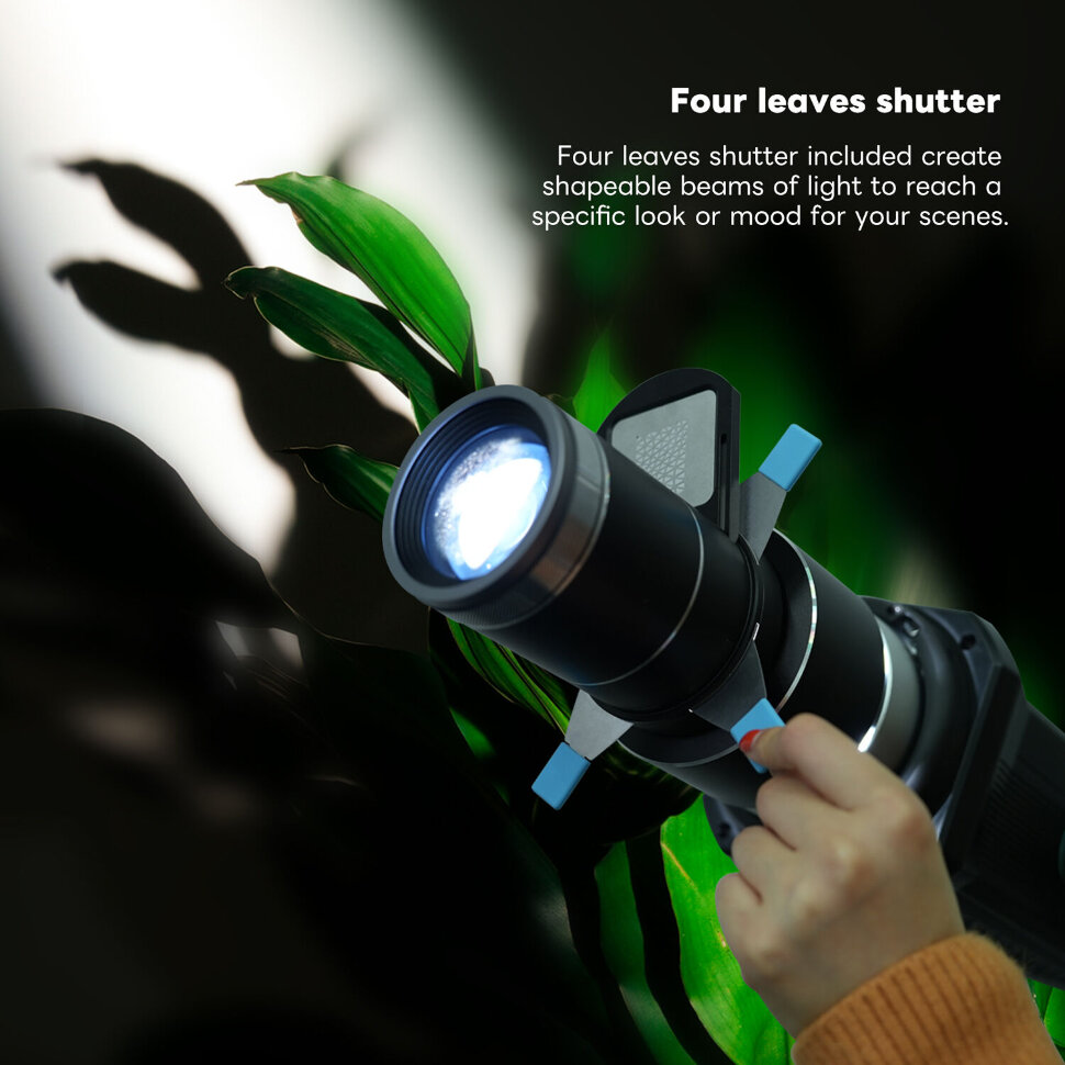 Точная работа со светомЧетыре лепестка затвора на бленде объектива создают формируемое световое пятно. Встроенный держатель масок Гобо поддерживает один из 25 вариантов, в то время как рамка цветного геля поддерживает возможность изменить оттенок света |