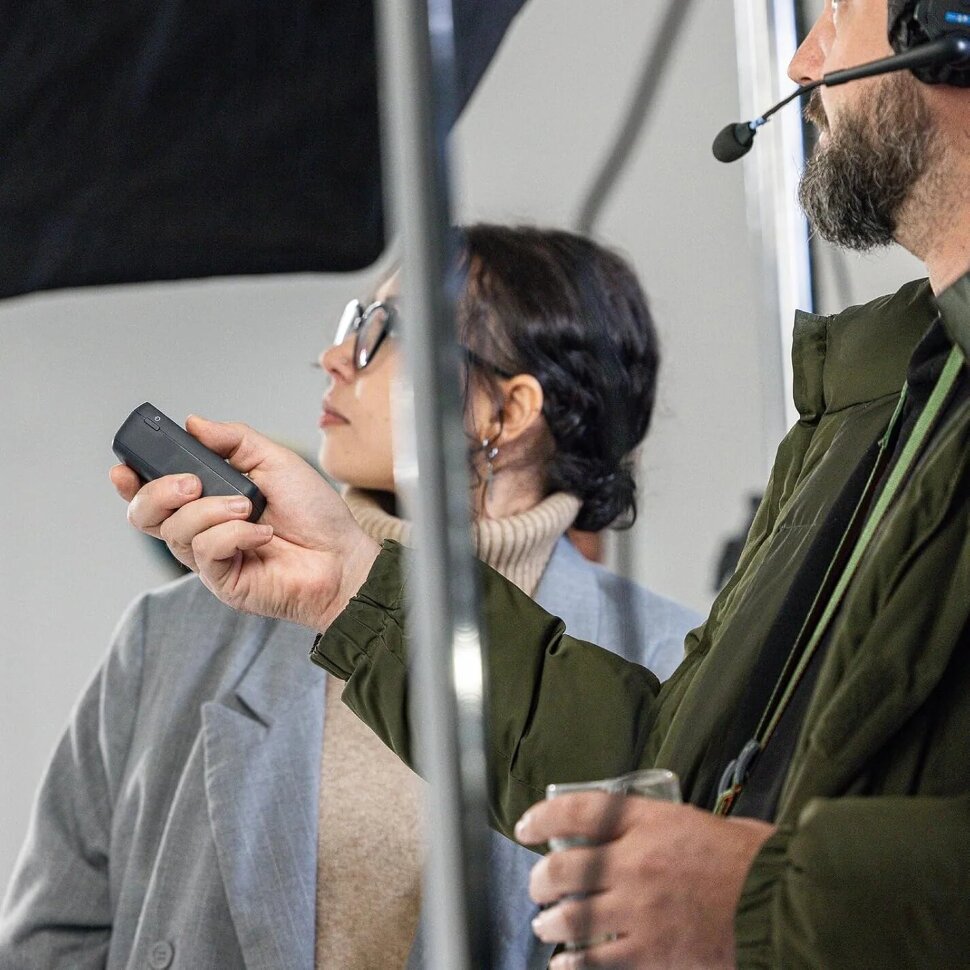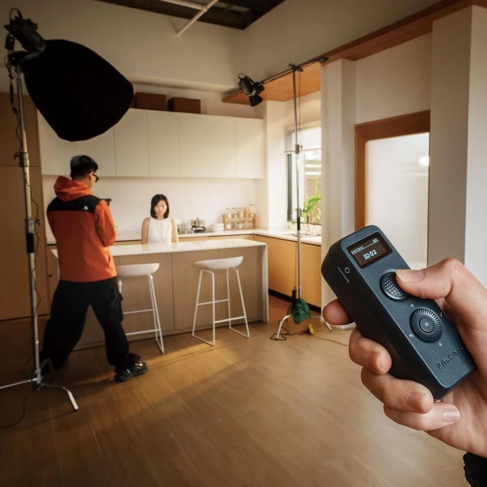 Пульт дистанционного управления для системы Move LightGo от FALCAM. Имеет дисплей для мониторинга параметров, а также джойстик позволяющий управлять движением устройства |