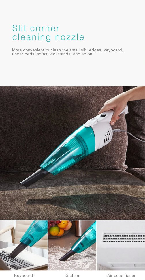 | Функциональный ручной пылесос для очистки различных видов поверхности. К его преимуществам относится компактность и энергоэффективность. С его помощью вы сможете качественно и быстро производить уборку в различных помещениях. Мощность всасывания устройства составляет 15000 Па. Оснащен системой фильтрации воздуха, что позволит эффективно справляться не только с мелкими частицами грязи, но и с пылью |