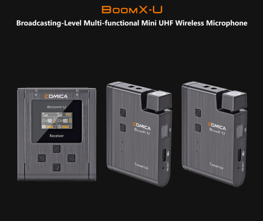 Компактная, аналоговая, двухканальнаяBoomX-U - это флагман аналоговых радиосистем от ComiCa. Прекрасное решение для профессиональной работы в компактном стильном корпусе. Система обеспечивает звук вещательного качества на расстоянии до 120 м на открытом пространстве. Для синхронизации устройств можно использовать режим автосканирования либо ИК порт |