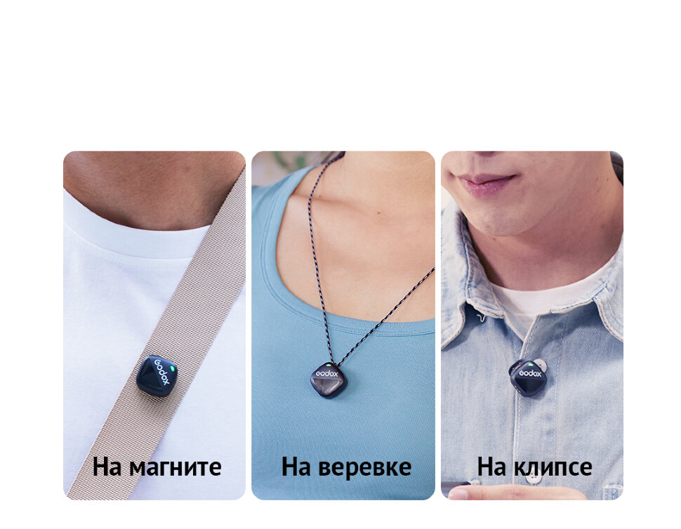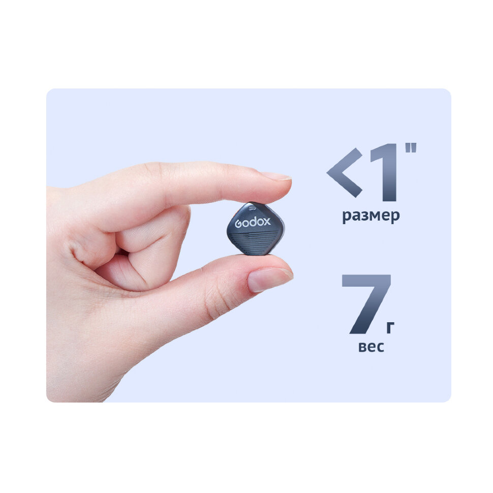 Передача данных осуществляется на частоте 2,4 ГГц, обеспечивая стабильное соединение на расстоянии до 300 метров. Два режима шумоподавления и возможность управления параметрами через кнопки или приложение Godox Mic позволяют добиться чистого и качественного звука в любых условиях |