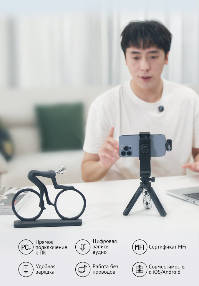 Одной из ключевых особенностей радиосистемы является функция отслеживания местоположения микрофона через приложение Find My, что значительно упрощает поиск потерянных передатчиков. Ультракомпактный дизайн зарядного кейса и легкий вес системы (всего 300 г) делают ее идеальным спутником для путешествий и выездных съемок |