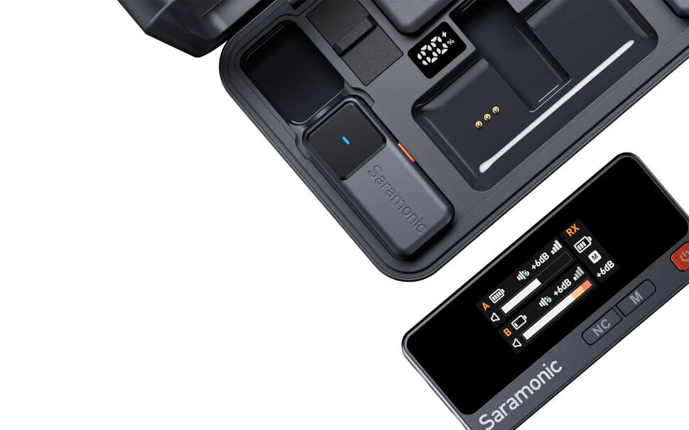 Универсальность и интеллектуальное управлениеПриемник с выходами 3.5 мм TRS и Type-C обеспечивает совместимость с камерой, смартфоном, планшетом и ПК. Система поддерживает одновременную запись на два устройства (Type-C + mini Jack) и возможность управления через мобильное приложение Saramonic, где доступна регулировка усиления, эквалайзера, фильтров низких частот (75/150 Гц) и мониторинг уровня сигнала. Функция автоматического включения вместе с камерой и запуска записи на смартфоне с передатчика упрощает процесс съемки |