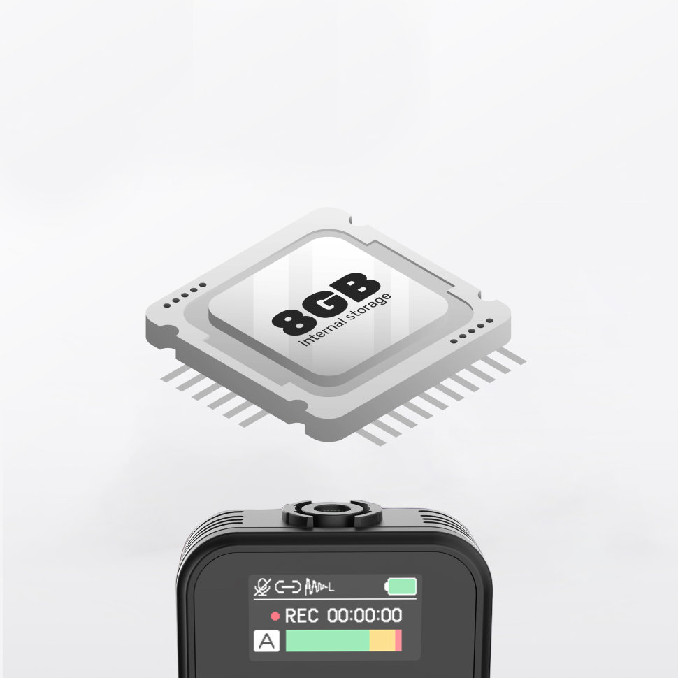 8 Гб встроенной памятиНаличие в передатчике встроенной памяти 8 Гб гарантирует запись без потери данных, даже при потере связи с приёмником. Общее время записи на внутреннюю память 24 часа, а в каждый файл содержит до 5 часов аудиозаписи. Каждый передатчик имеет порт Type-C для прямого вывода звука из хранилища |